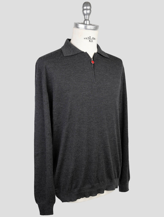 Kiton Dark Gray 100% Wool Polo Sweater - Handmade Italian