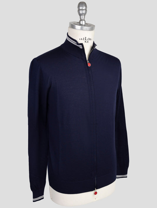 Kiton Blue Wool Full Zip Sweater - Handmade Italian Diamante Blu
