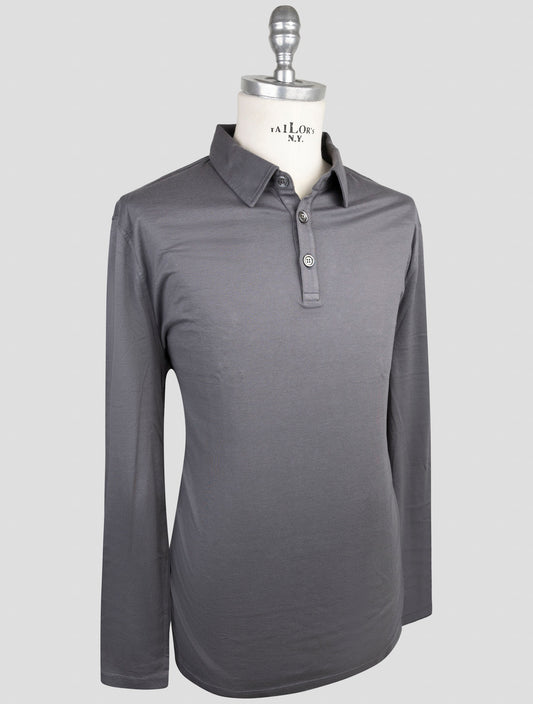 Kiton Cashmere Silk Polo Sweater Dark Gray Handmade Italian