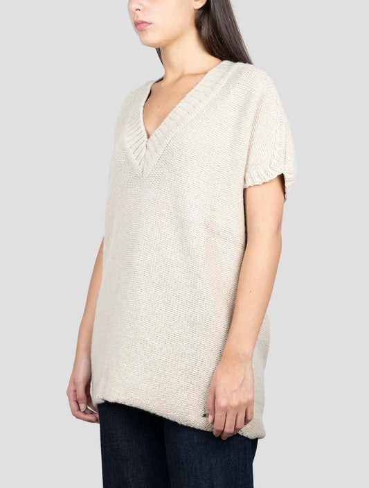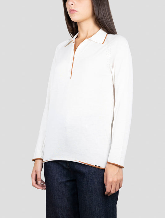 Kiton Luxury Cashmere Silk Polo Sweater White Handmade Italian