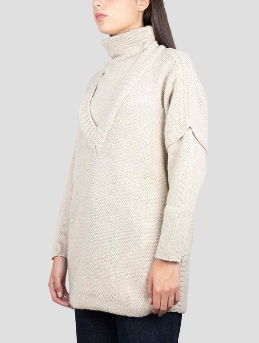 Kiton Handmade Cashmere Silk White Turtleneck Sweater Women