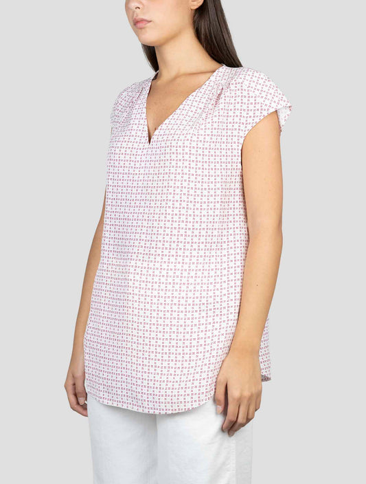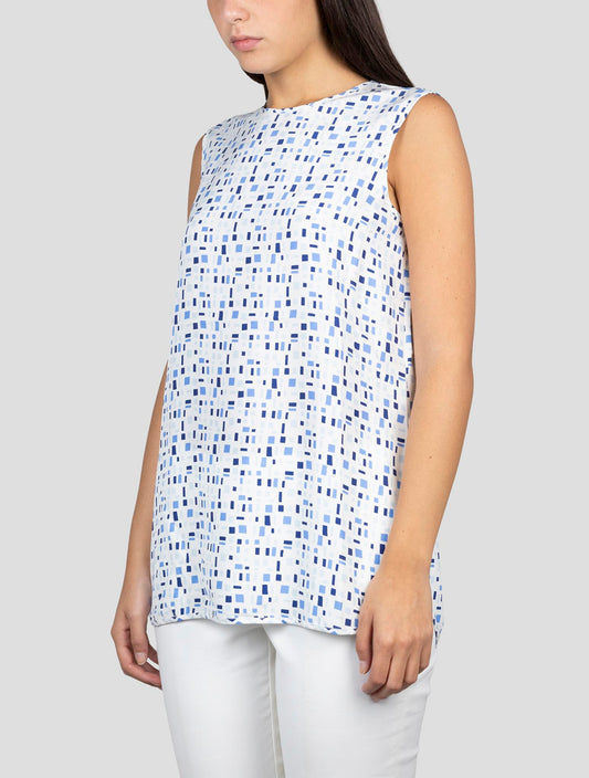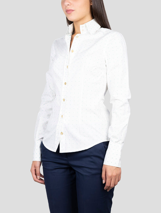 Kiton Handmade Cotton Shirt - White Green Geometric Women's