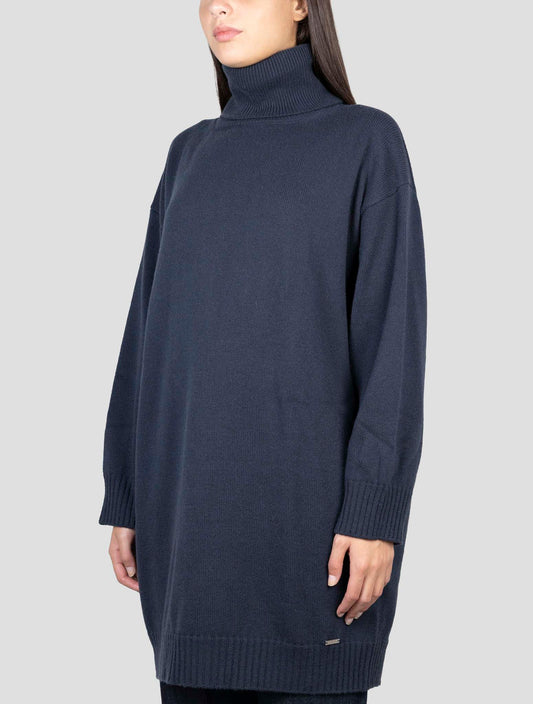 Kiton Cashmere Turtleneck Sweater Women's Blue Italian Handmade