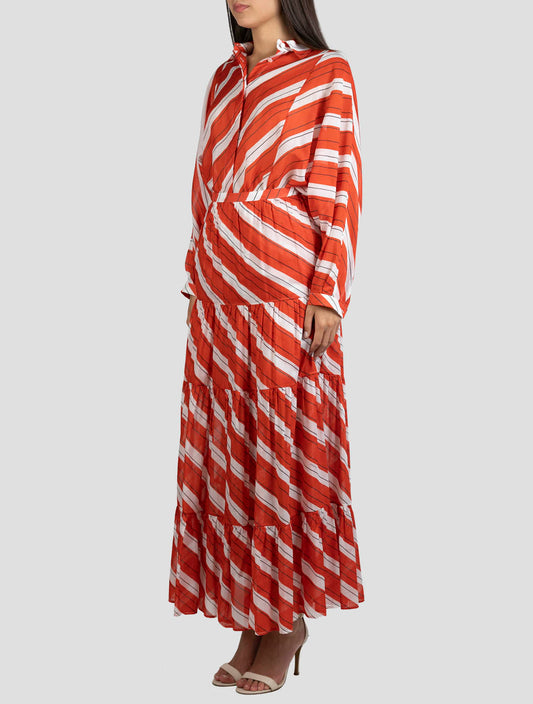 Kiton Handcrafted Brown Yellow Linen Viscose Dress - Italian Made