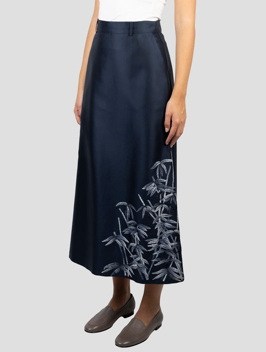 Kiton Women's Dark Blue Cotton Silk Skirt - Italian Handmade