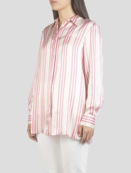 Kiton Women's Pink White Striped Silk Shirt - Handcrafted