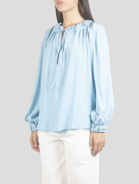 Kiton Handcrafted Light Blue Pure Silk Women's Shirt