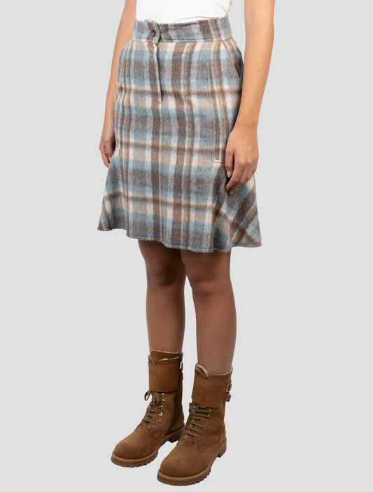 Kiton Multicolor Alpaca Wool Plaid Skirt - Handcrafted Italian