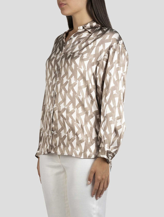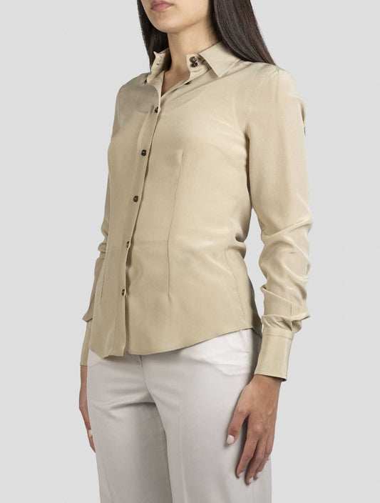 Kiton Women's Handmade Beige White 100% Silk Shirt Italian