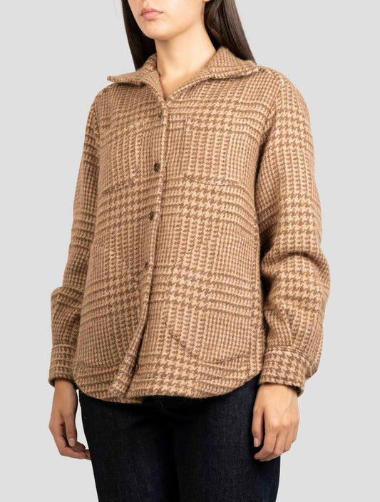 Kiton Brown Virgin Wool Alpaca Overshirt - Pied de Poule Pattern