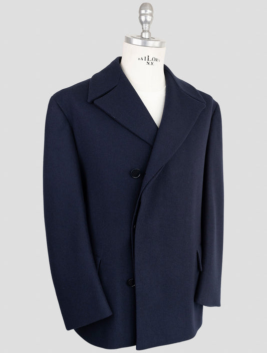 Kiton KNT Blue Double-Breasted 14-Micron Virgin Wool Coat Italian