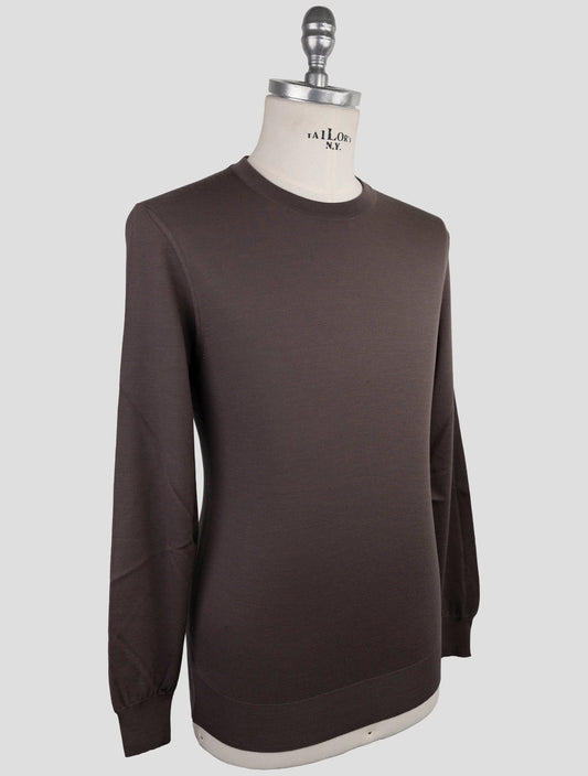 Kiton Pure Wool Crewneck Sweater Men's Taupe Italian Luxury