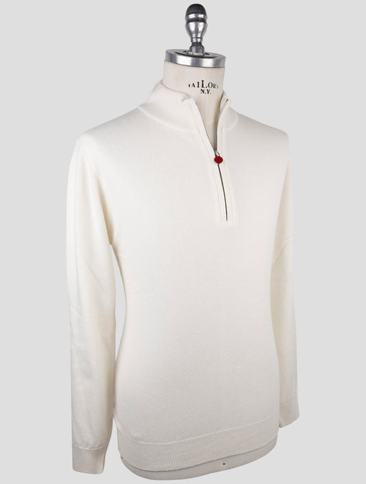 Kiton Men's Pure Cashmere Half-Zip Sweater White Italian Made