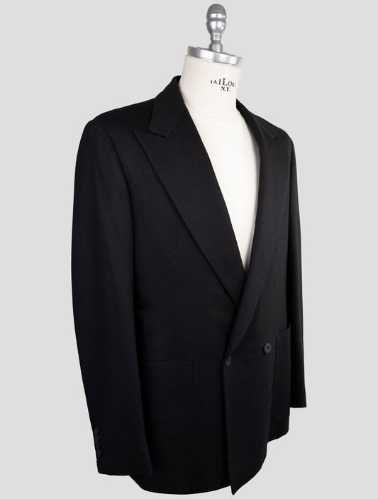 Kiton KNT Double-Breasted Virgin Wool Mohair Tuxedo Blazer Black