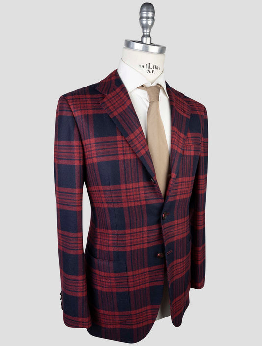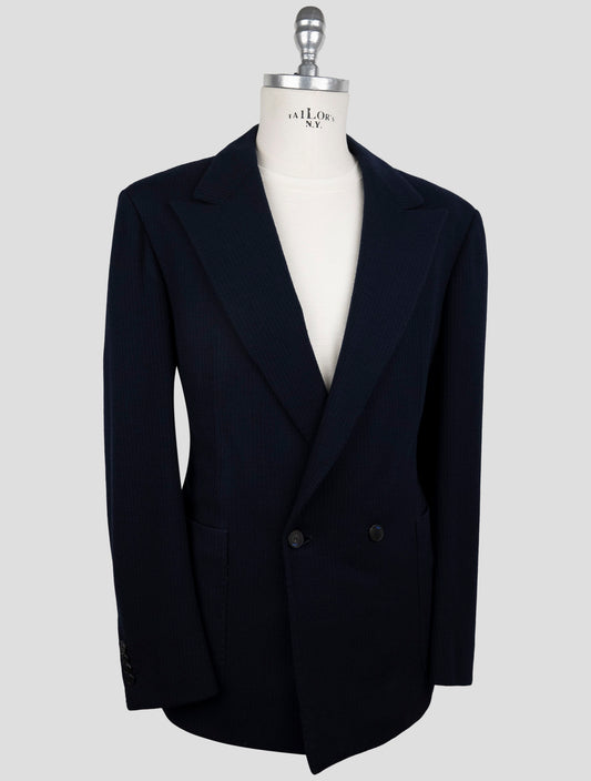 Kiton KNT Blue Virgin Wool Cotton Double Breasted Blazer Italy