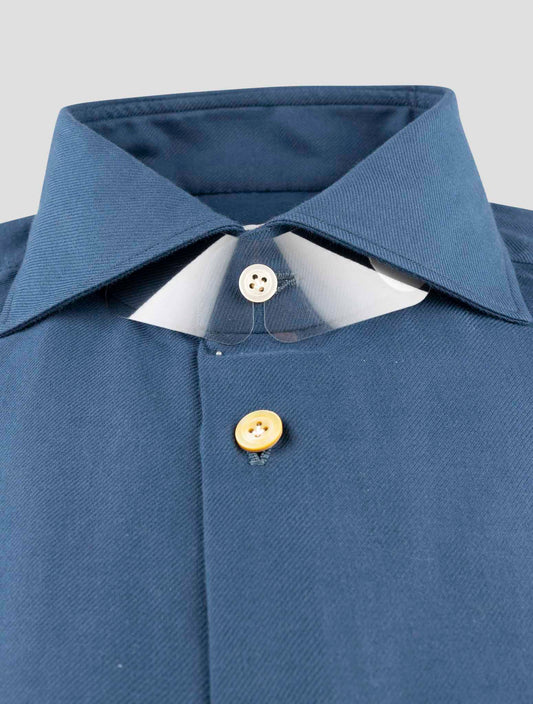 Kiton Blue Cotton Cashmere Dress Shirt - Italian Handmade Regular