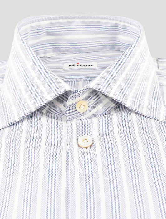 Kiton Handmade Cotton Blue White Striped Dress Shirt Italian