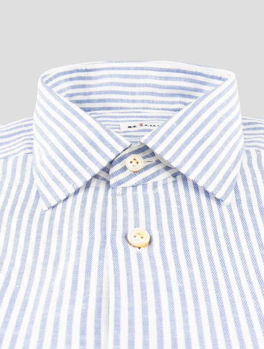 Kiton Premium Light Blue Striped Cotton Dress Shirt - Handmade