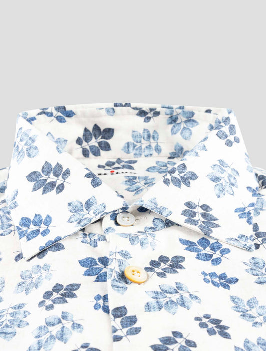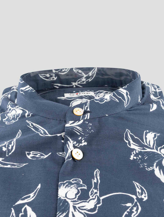 Kiton Handmade Cotton Shirt Blue White Floral Italian Luxury