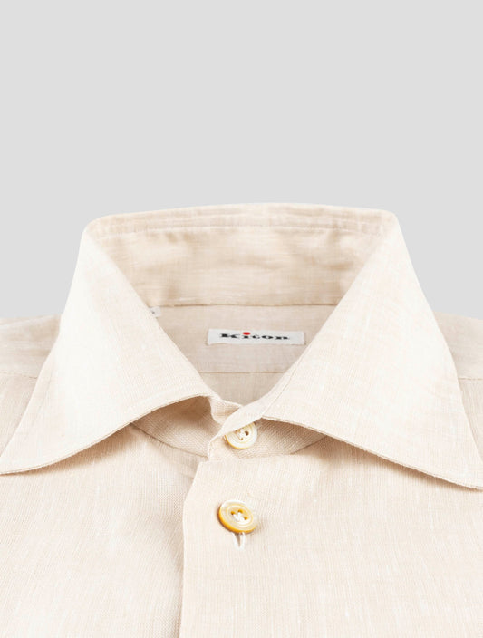 Kiton Pure Linen Shirt Men's Beige Handmade Italian Summer