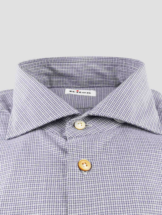 Kiton Premium Cotton Shirt Gray Blue Geometric Pattern Italian Men