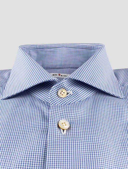 Kiton Blue Cotton Dress Shirt - Handmade Italian Geometric Pattern