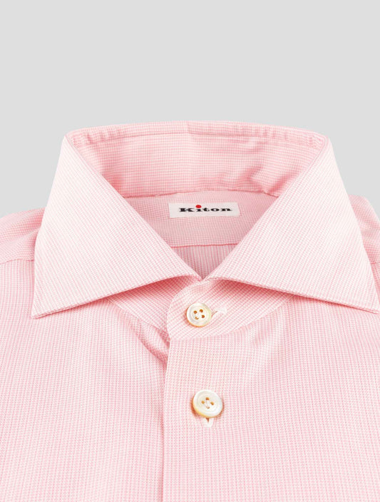 Kiton Geometric Cotton Dress Shirt Pink White Italian Handmade