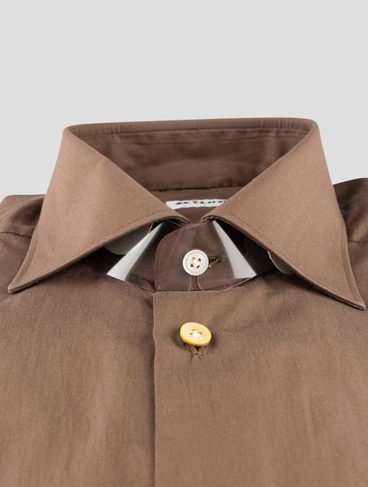 Kiton Brown Cotton Dress Shirt - Handmade Italian Men's Shirt