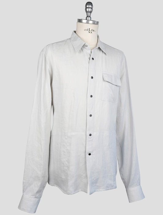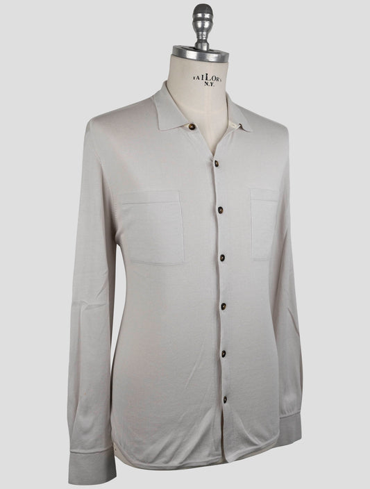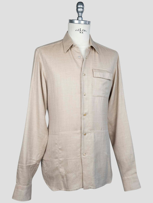 Camisa de Vestir para Hombre Kiton Beige de Cachemira, Seda y Lino