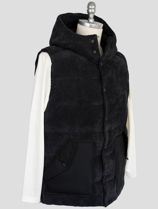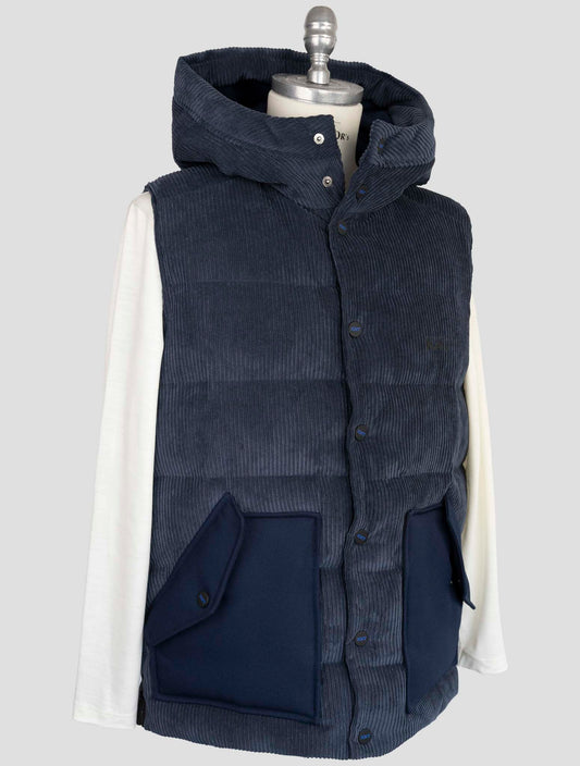 Kiton KNT Dark Blue Velvet Hooded Gilet - Premium Italian Coat