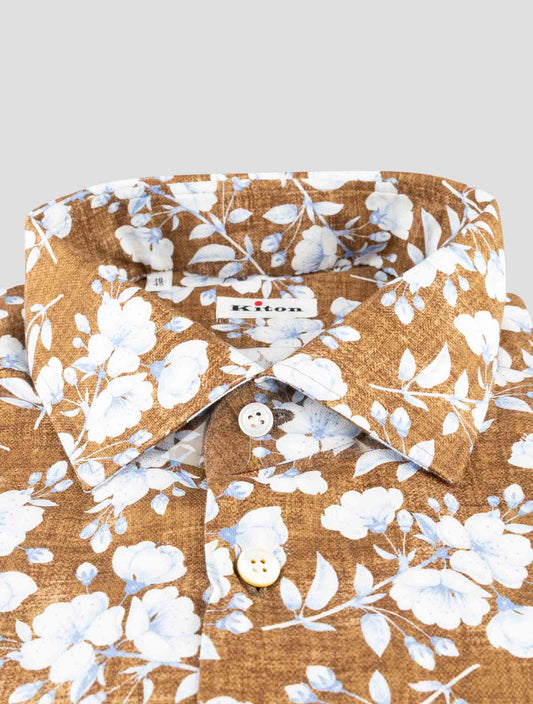 Kiton Cotton Floral Shirt - Multicolor Handmade Italian Regular Fit