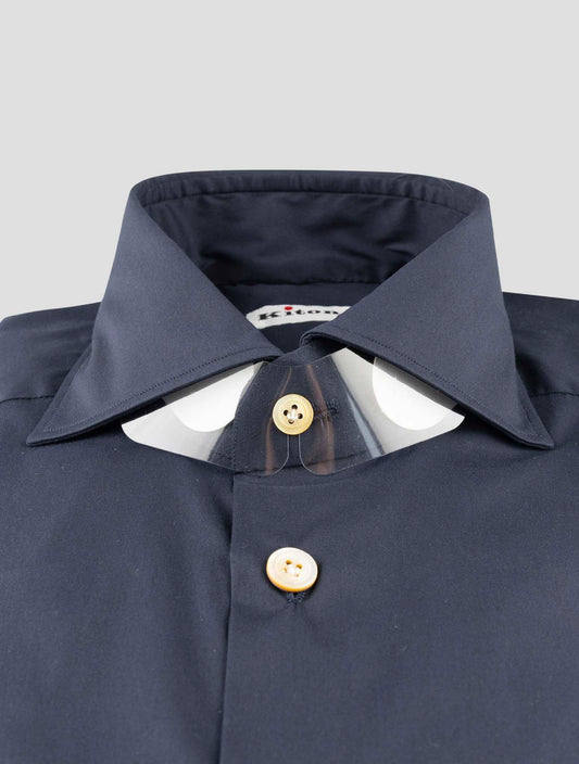 Kiton Blue Cotton Dress Shirt - Handmade Italian Regular Fit