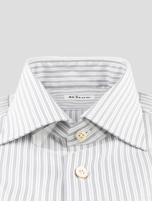 Kiton Handmade Cotton Striped Dress Shirt Gray Italian Premium