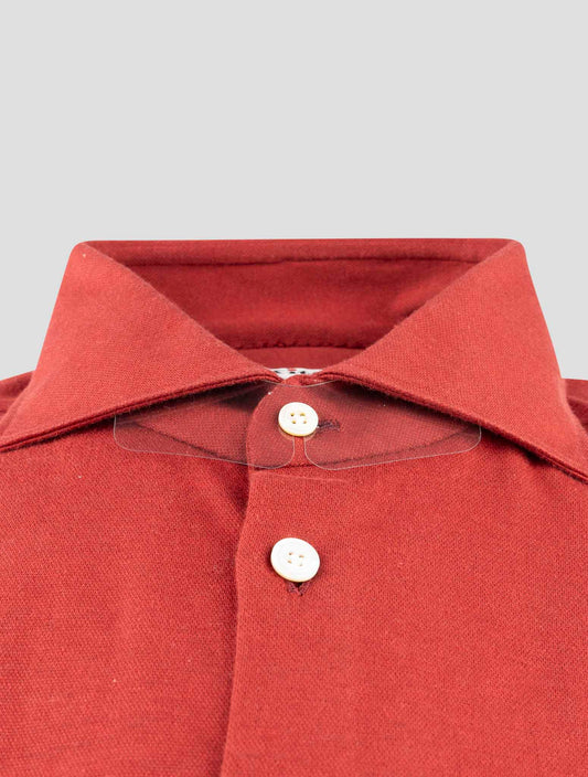 Kiton Red Cotton Cashmere Shirt - Handmade Italian Regular Fit