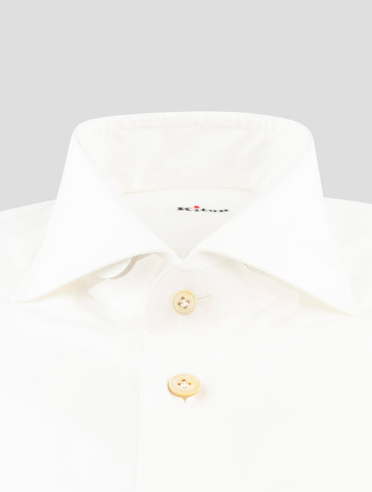 Kiton White Cotton Dress Shirt - Handmade Italian Regular Fit