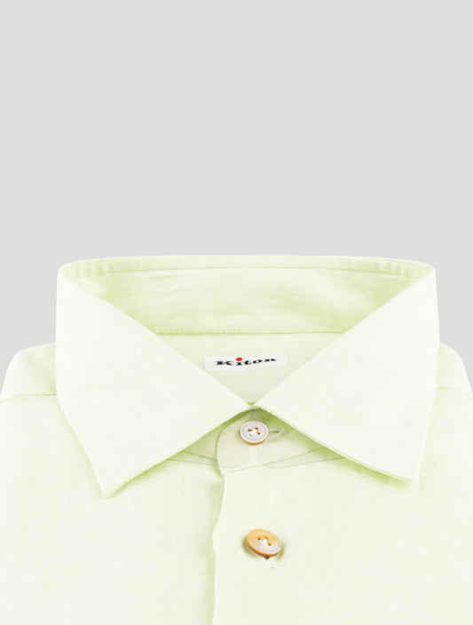 Kiton Handmade Green Linen Cotton Shirt - Italian Regular Fit