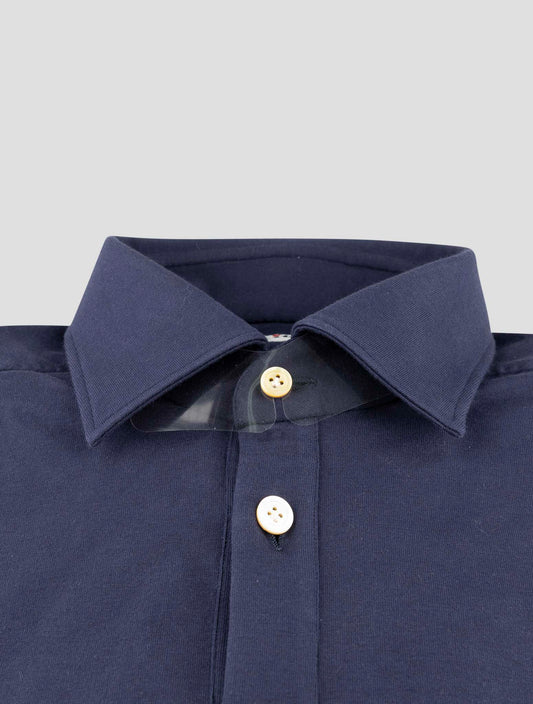 Kiton Blue Cotton Elastane Dress Shirt - Italian Handmade Regular