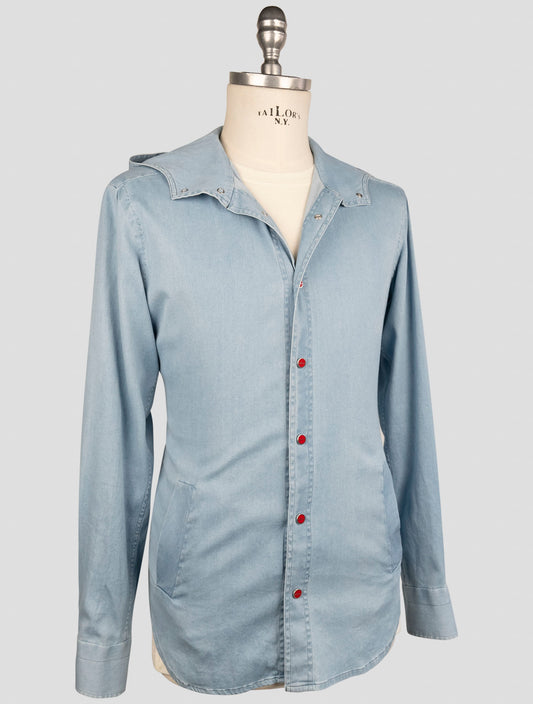 Chemise en Soie Coton Cachemire Kiton Bleu Mariano