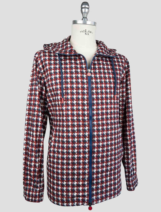 Chemise en Coton Geométrique Bordeaux et Bleu Kiton Umbi