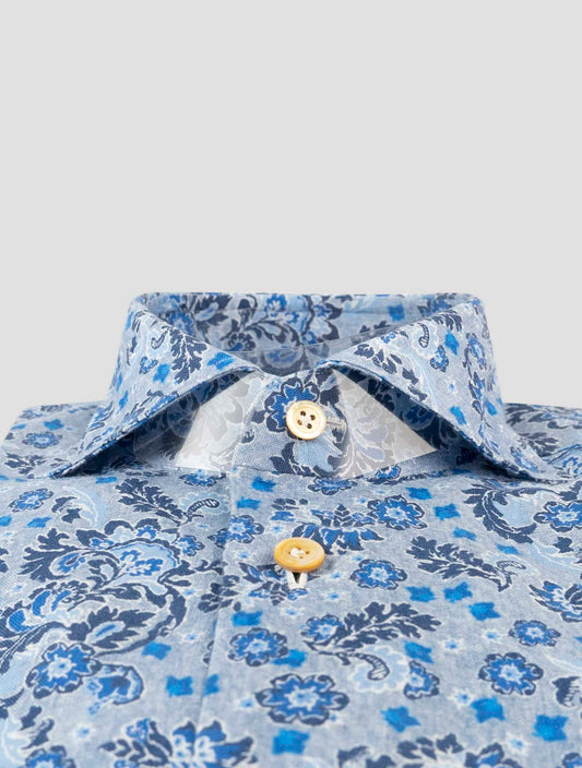 Kiton Blue Linen Shirt - Italian Handmade Floral Pattern