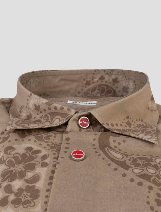 Kiton Brown Paisley Cotton Shirt - Italian Handmade Premium Dress Shirt