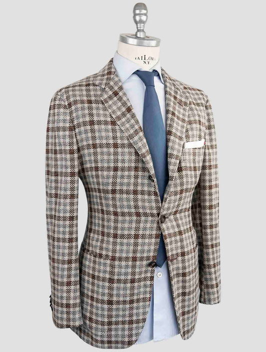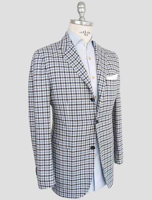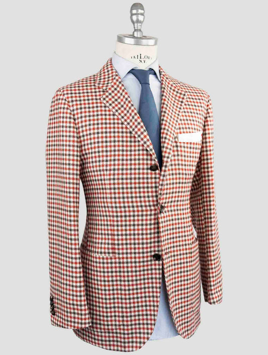 Kiton Handmade Pure Cashmere Multicolor Plaid Blazer 3-Button