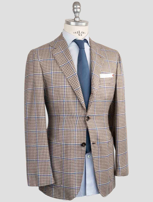 Kiton Handmade Brown Cashmere Silk Linen Blazer Pied de Poule