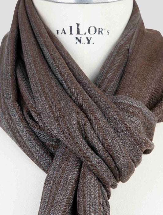 Kiton Luxury Cashmere Scarf Gray Brown 70x180cm Italian Handmade