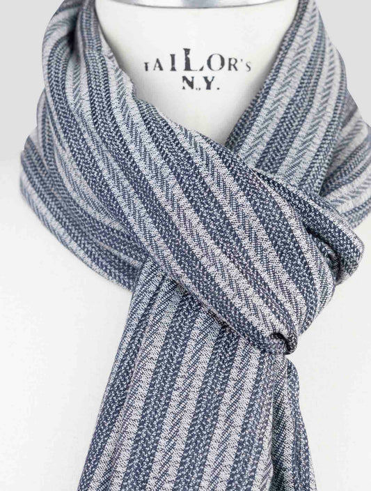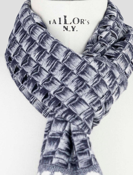 Kiton Pure Cashmere Scarf Blue White Italian Handmade Winter