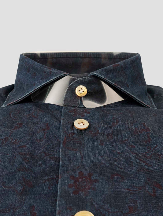 Kiton Premium Cotton Blue Floral Dress Shirt Handmade Italian