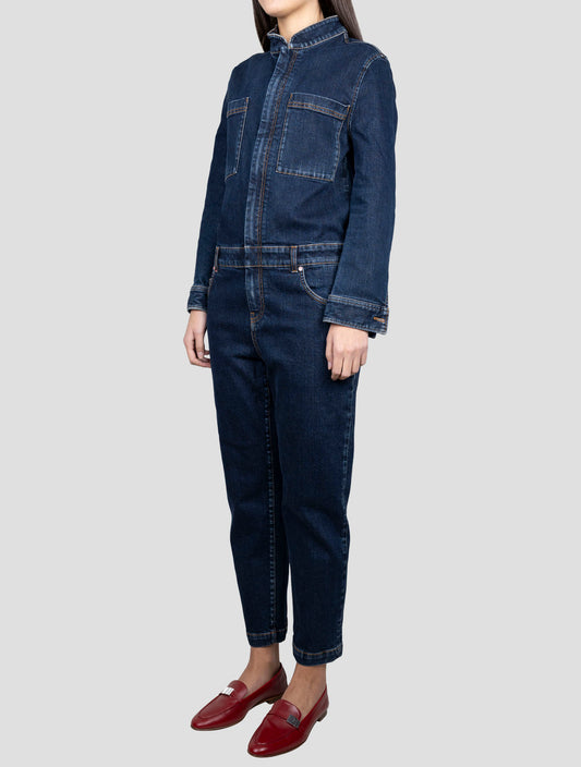 Kiton Blue Cotton Jumpsuit - Italian Handmade Women's One-Piece
