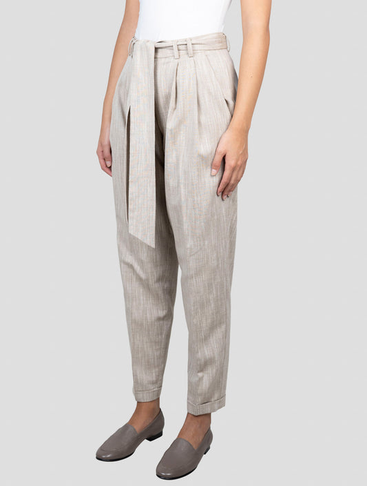 Kiton Beige Linen Viscose Women's Pants - Tailored Italian