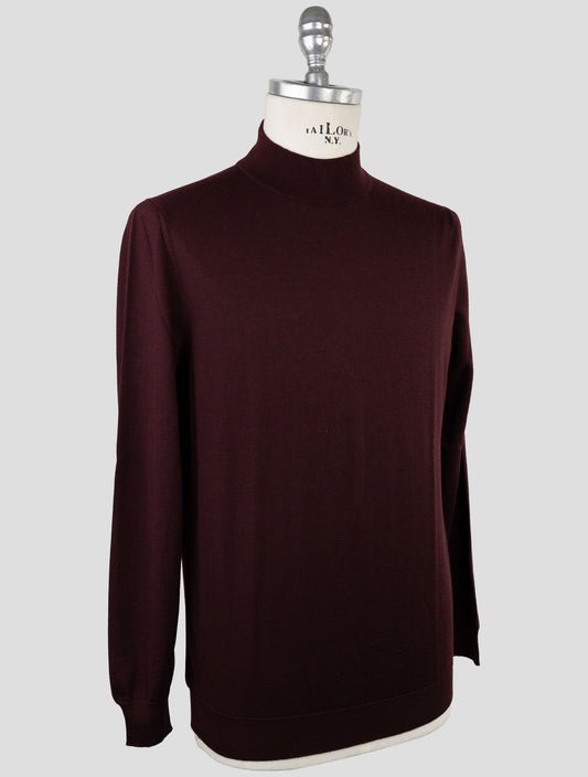 Kiton Premium Cashmere Silk Half-Neck Sweater Burgundy Italian