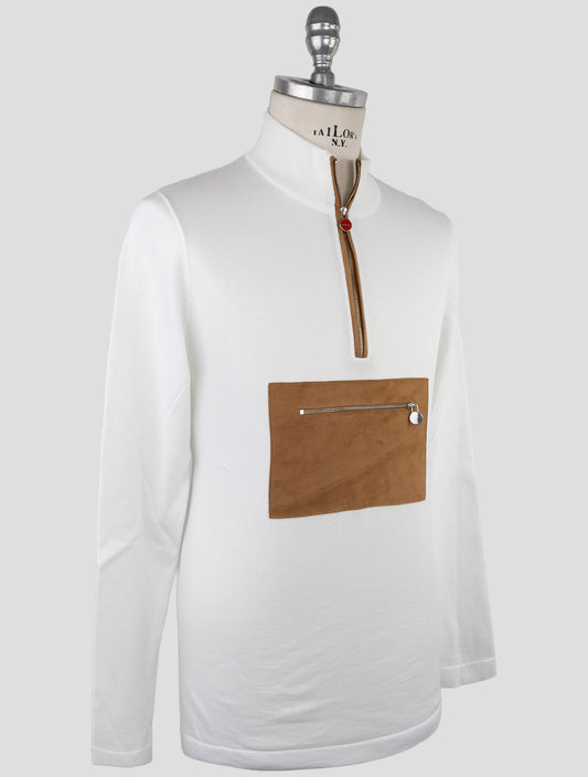Kiton Premium Italian Cotton Half-Zip Sweater White Men's